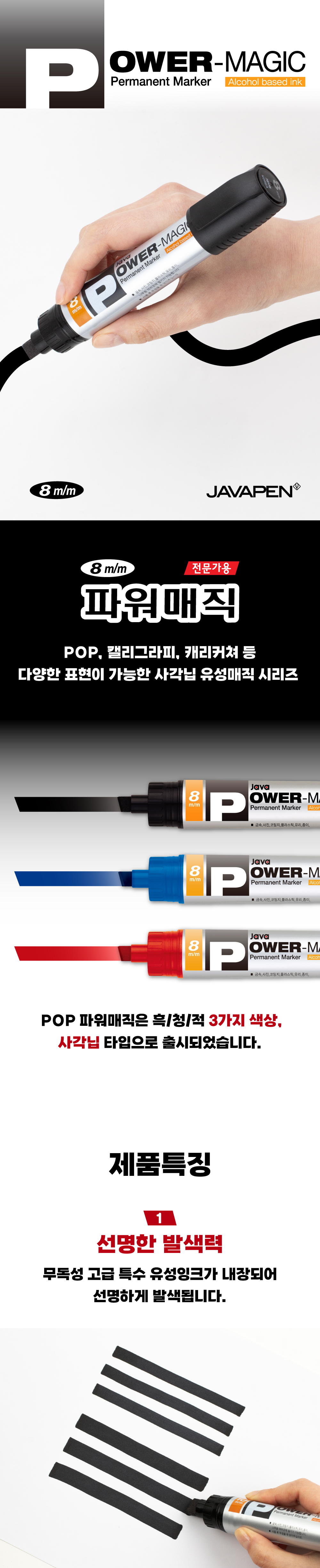 8mm사각매직 상품번호 : 5762 로그인후 확인가능 바디컬러 검정.파랑,빨강 잉크컬러 무독성 특수 유성잉크 검정,파랑,빨강 닙 굵기 8.0mm 고급 아크릴닙 원산지 한국 제조사 (주)자바펜 잉크색상 블랙 블루 레드 수량선택(타) − +